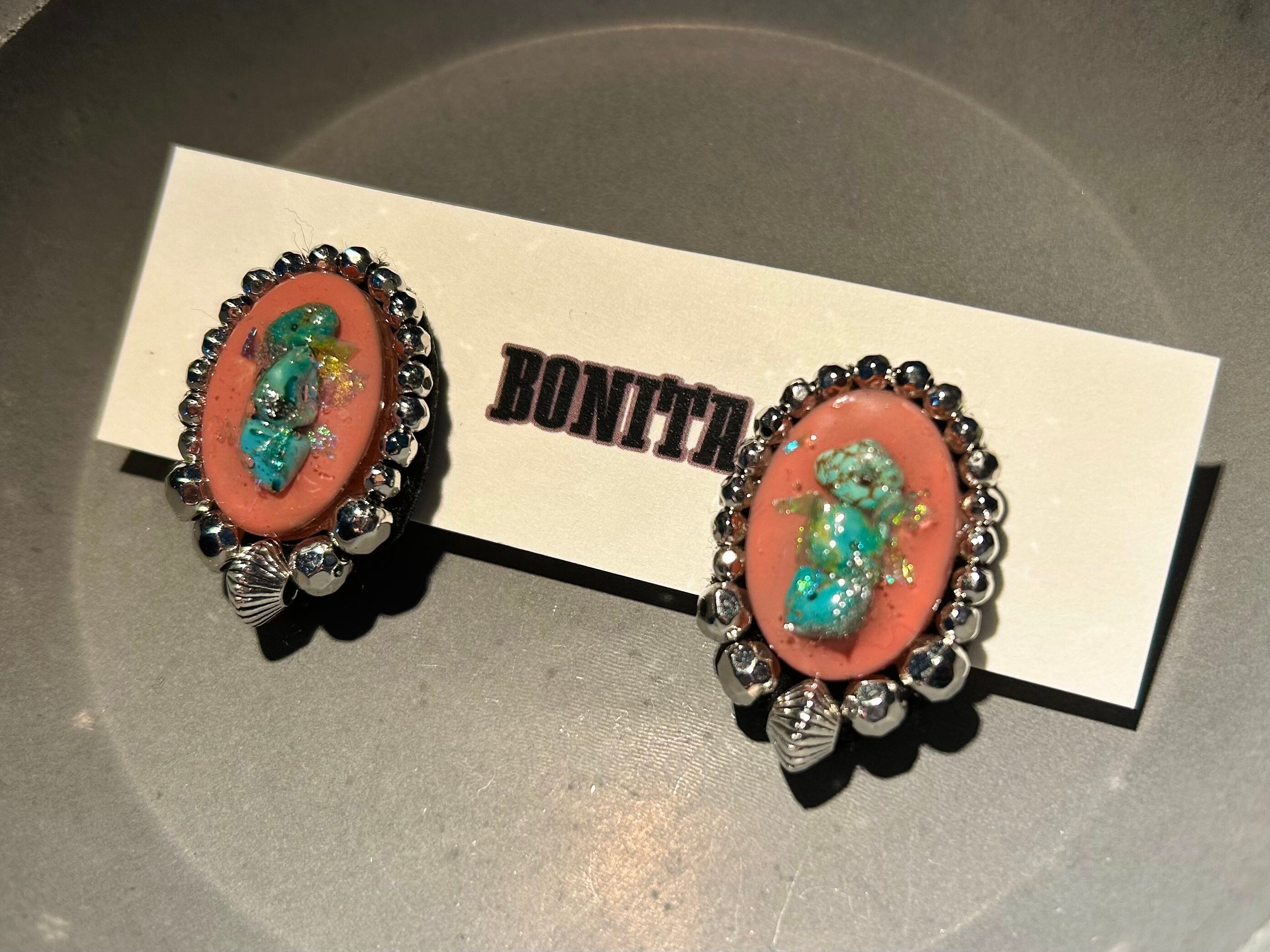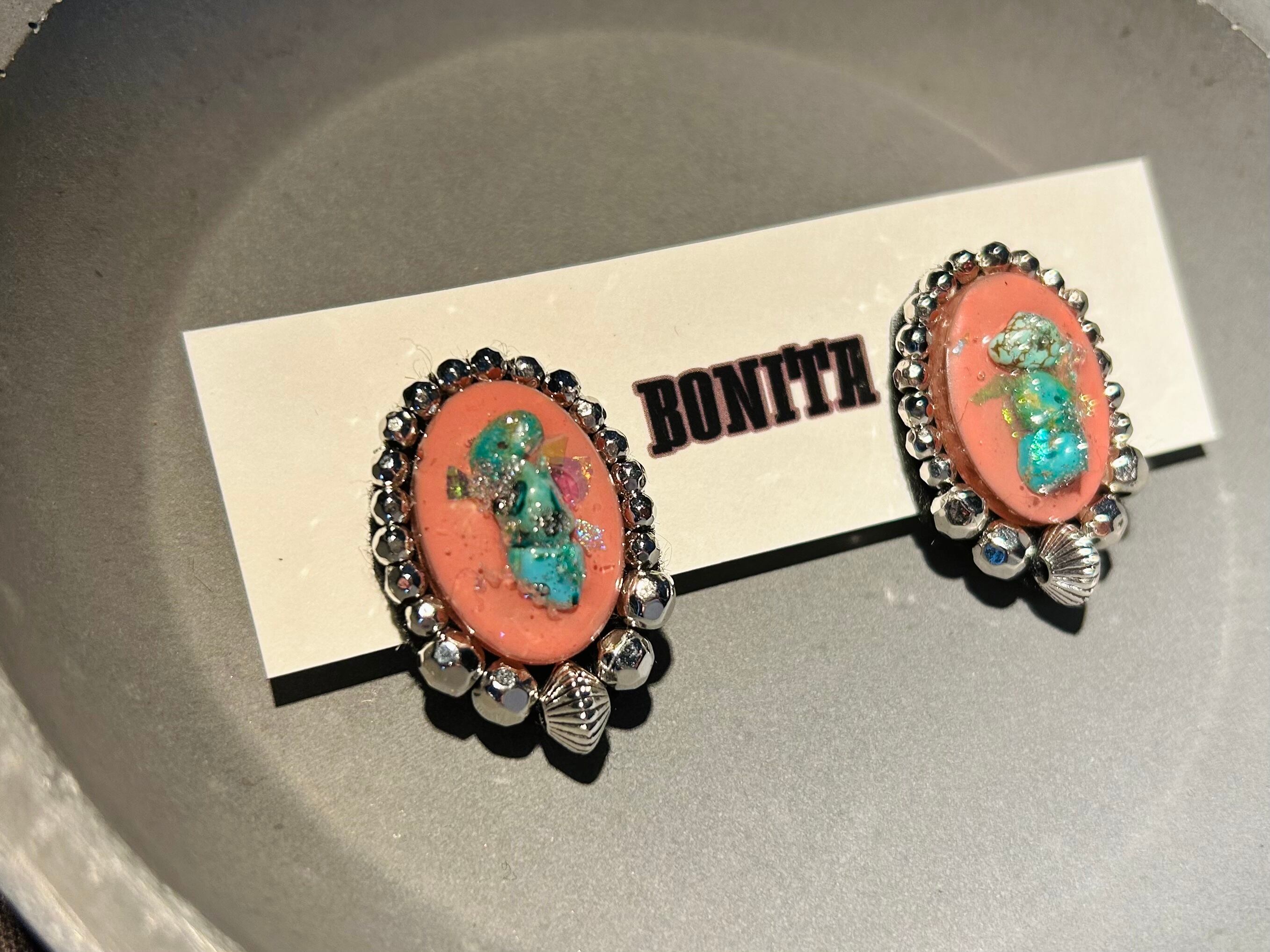 レジン、ビーズ刺繍にて製作。