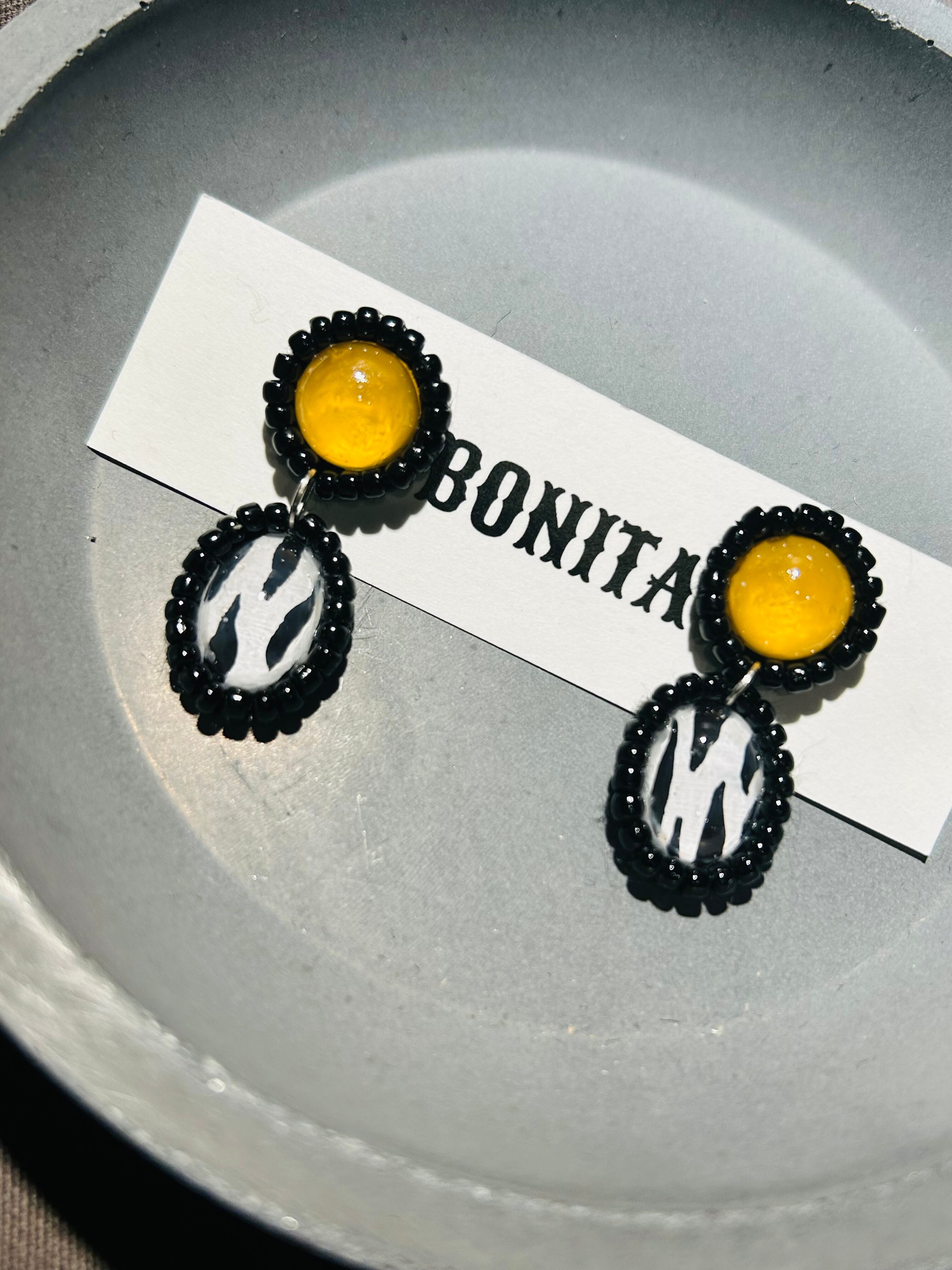 レジン、ビーズ刺繍にて製作。